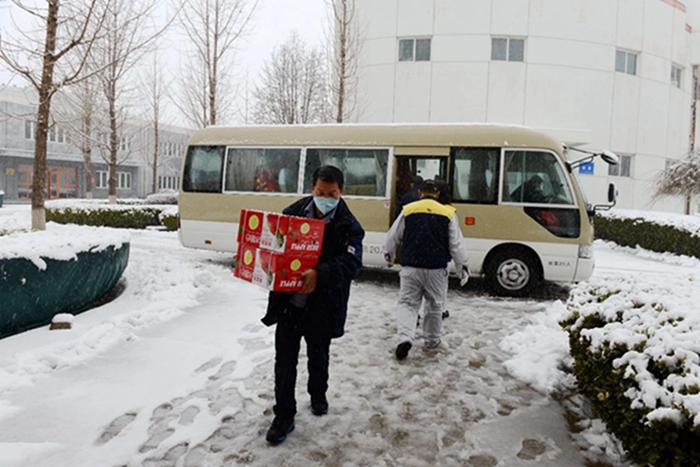2月14日,北京普降大雪,北化集團工會、宣傳部安排三名同志,集團辦公室安排經(jīng)驗豐富的駕駛員,冒著紛飛的大雪,滿載慰問品,專程前往華騰化工園區(qū)和華騰橡塑公司進行走訪慰問,為戰(zhàn)斗在疫情防控和復(fù)工復(fù)產(chǎn)一線的干部職工送上集團黨委、工會“娘家人”貼心的關(guān)懷和溫暖。
