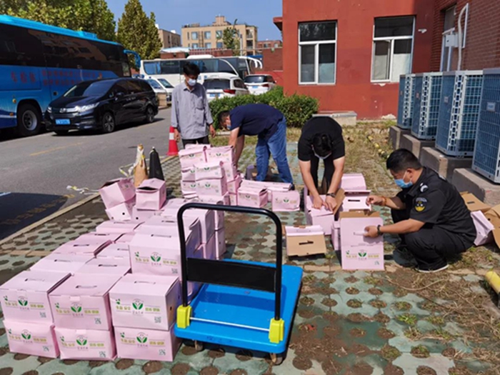 北化集團工會向所屬二級單位積極推薦沙峪溝村特產——農科院主推的無公害、高甜度的西瓜紅紅薯,以及當地經濟作物——板栗。“消費廣告”的推出,立刻引來“圍觀”,各二級單位紛紛響應,9月17日至21日短短5天時間里,集團所屬22家二級單位陸續下單訂貨。9月25日,第一批紅薯和板栗送到了職防院、化研院和華騰新材料干部職工手中。在隨后的幾天里,王唯良與村民們一起起早貪黑,刨紅薯、摘板栗,稱重、裝盒。一趟一趟地往返于北化集團各二級企業與沙峪溝村之間,將新農村建設的成果和一份份樸實村民的祝福送到干部職工手中。
