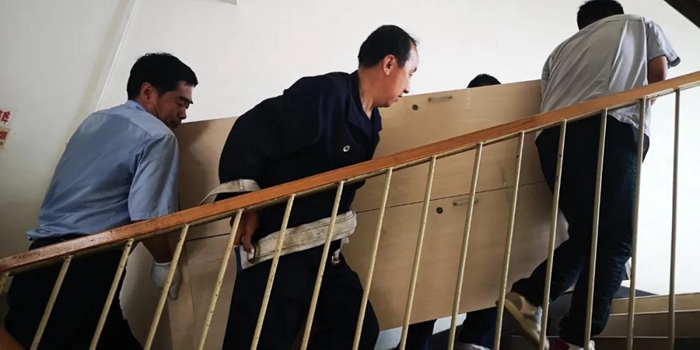當(dāng)日天氣十分潮濕悶熱,不動都是一身汗,但是黨員同志們在周玉斌的帶領(lǐng)下,一件一件搬動近兩米的衣柜,一步一步搬運(yùn)至宿舍樓四樓。經(jīng)過大家的共同努力,終于將幾組衣柜搬運(yùn)到了新員工宿舍,并細(xì)致地更換了柜鎖。