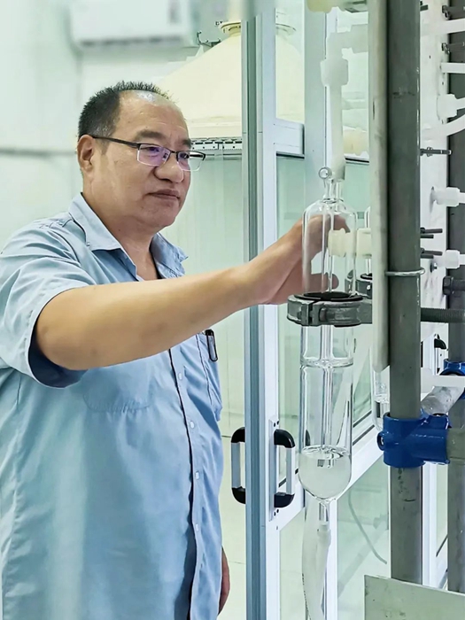 “電子級(jí)丁基卡必醇乙酸酯提純工藝研發(fā)”是試劑所承擔(dān)北京化工集團(tuán)服務(wù)首都功能,服務(wù)于微電子行業(yè)的科研開發(fā)課題。電子級(jí)丁基卡必醇乙酸酯主要作為其中的溶劑應(yīng)用于電子漿料產(chǎn)品中。目前我國(guó)丁基卡必醇乙酸酯的生產(chǎn)廠家多生產(chǎn)工業(yè)級(jí)產(chǎn)品,無(wú)法滿足電子行業(yè)使用要求,高級(jí)別產(chǎn)品國(guó)內(nèi)幾乎沒有生產(chǎn)廠家,主要依靠國(guó)外進(jìn)口。試劑所致力于打破國(guó)外技術(shù)封鎖,成為國(guó)內(nèi)首家電子級(jí)丁基卡必醇乙酸酯的生產(chǎn)廠家?,F(xiàn)由該工作室擔(dān)當(dāng)主力,承擔(dān)攻堅(jiān)克難任務(wù)。目前項(xiàng)目正按照預(yù)期穩(wěn)步進(jìn)行,丁基卡必醇乙酸酯項(xiàng)目從前期的調(diào)研、試驗(yàn)摸索到后期的設(shè)計(jì)圖紙、精餾塔的組裝,管道的連接再到現(xiàn)在的中試環(huán)節(jié),工作中的每一個(gè)步驟都是工作室人員親力親為,每一個(gè)細(xì)節(jié)都凝結(jié)著工作室人員的心血。