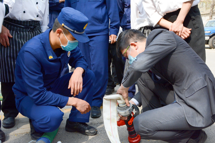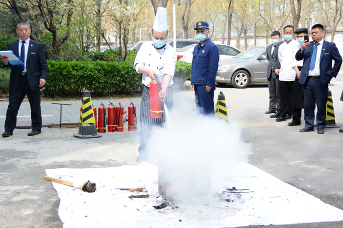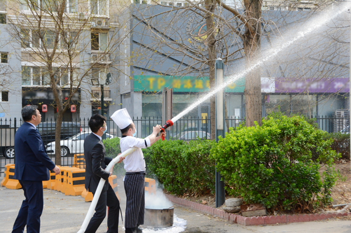 培訓中,消防救援站人員圍繞安全用火、自查自糾火災隱患、撲滅初期火災、疏散逃生等基本消防安全常識進行了詳細講解,并針對酒店實際情況,特別是中控室值班人員如何開展現場火災事故處置,以 “講、授、教”的方式進行指導。同時,現場示范如何正確使用滅火器滅火、消火栓接水帶滅火等實操技能。此外培訓嚴格按照 “出真水、滅真火”的方式進行現場“滅真火”全員考核實操演練,讓每名參訓員工親身體驗操作滅火器及消火栓滅火的過程。