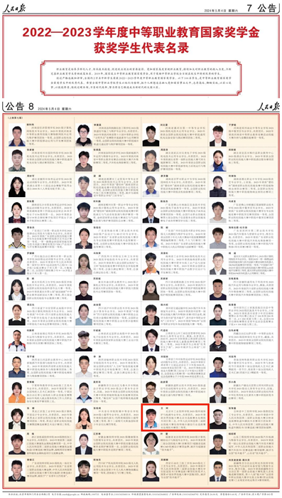 5月4日、5日,《人民日報》專版刊登了100名研究生國家獎學金獲獎學生優秀代表、100名本??粕鷩要剬W金獲獎學生優秀代表、100名中等職業教育國家獎學金獲獎學生優秀代表名錄。北京市工業技師學院環保與生物制藥系2021級環境保護與檢測專業學生王珂,榜上有名。