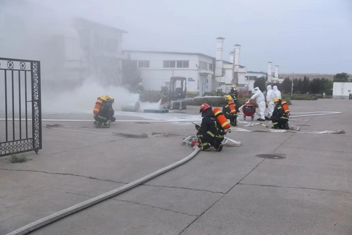 為進(jìn)一步筑牢安全生產(chǎn)防線,壓緊壓實(shí)安全生產(chǎn)責(zé)任, 6月底,華騰化工組織開展了2024年危險(xiǎn)化學(xué)品火災(zāi)事故應(yīng)急演練。此次演練模擬場景為危險(xiǎn)化學(xué)品庫房入庫作業(yè)時(shí)發(fā)生丙酮泄露著火,開展了火災(zāi)上報(bào)與先期處置、人員疏散逃生、微型消防站和消防救援隊(duì)滅火等環(huán)節(jié)的演練科目。