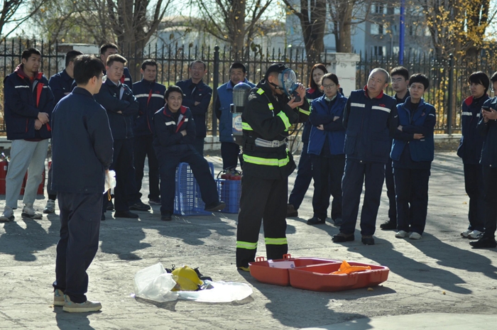 化研院首先進(jìn)行了模擬辦公樓起火疏散演練。培訓(xùn)伊始,消防站專業(yè)人員結(jié)合近年來典型的火災(zāi)案例,深入淺出地講解了火災(zāi)危害、報警程序、逃生注意事項(xiàng)等極具實(shí)用性的方式方法。