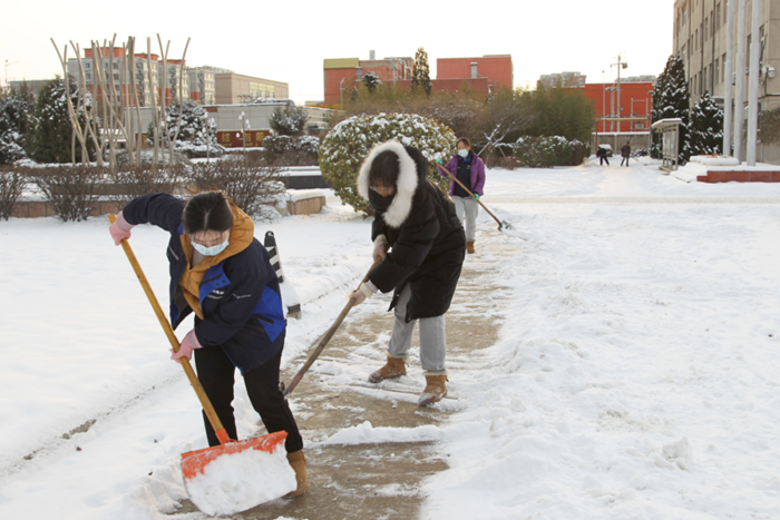剛到單位的干部職工,紛紛拿起掃帚、鐵鍬,加入到掃雪除冰大“會戰(zhàn)”的隊伍中。大家齊心協(xié)力、現(xiàn)場一片熱火朝天,干凈整潔的道路很快清掃出來,保證了干部職工出行安全。