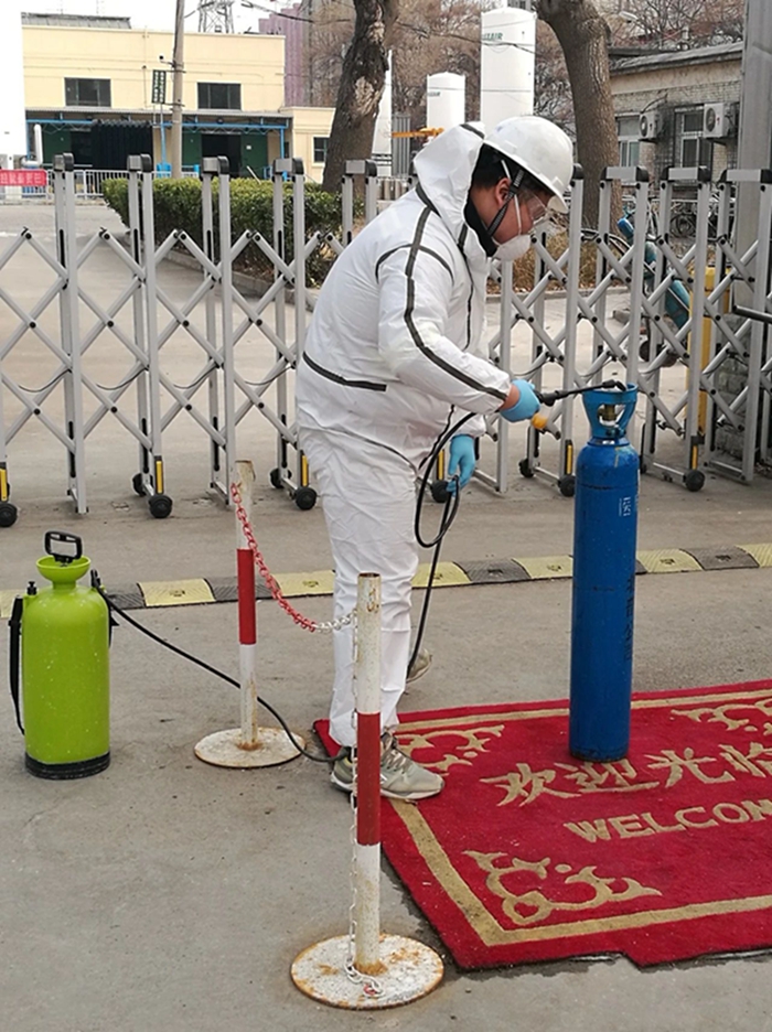疫情發(fā)生以來,華騰冀春按照北化集團(tuán)黨委要求,全力做好疫情防控工作。公司在3天時(shí)間內(nèi)購入口罩1000個(gè),消毒液16桶,測溫儀2個(gè),高壓噴水壺2個(gè),保障公司全體值班人員每天2個(gè)口罩的替換需求。自疫情爆發(fā)以來,華騰冀春無一例確診和疑似病例。