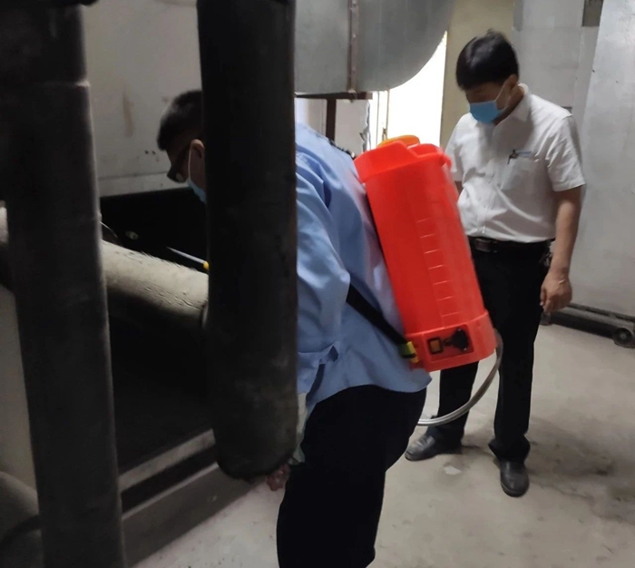 工作人員對華騰新天地商場新風機組進行消殺作業