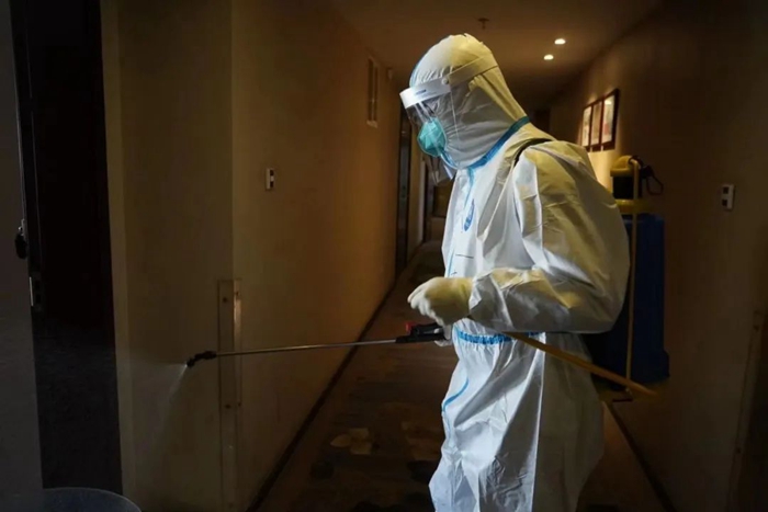 每天深夜,當賓客們沉沉睡去,閉環(huán)服務(wù)人員還要進行垃圾消毒清運工作。眾所周知,垃圾是病毒最容易傳播的媒介,為防止疫情傳播,閉環(huán)人員要對一袋袋垃圾進行全面消殺,然后再手動一袋袋地將垃圾送至目標場所,垃圾的異味常常令服務(wù)人員一陣陣作嘔,但大家沒有一句怨言。