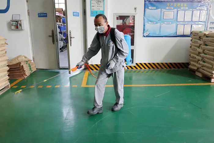 早在3月份,華騰首研公司就根據疫情防控形勢進一步織密防控網,對公司100余人行動軌跡進行排查,確保第一時間掌握干部職工健康狀況;對辦公區域、車間、庫房每天固定時間進行逐一消殺;對進出人員嚴格管控,非公司人員一律不得進入公司,對確有業務往來的公司外來人員嚴格要求其佩戴口罩、測量體溫、查驗健康碼、行程碼。