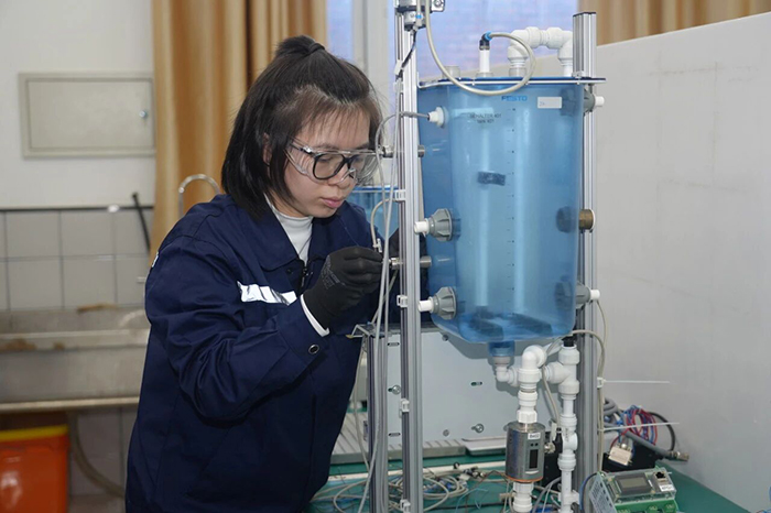 一滴水的旅程,關(guān)乎萬(wàn)家冷暖,關(guān)乎一方水土。當(dāng)千家萬(wàn)戶為春節(jié)團(tuán)圓而舉杯時(shí),一群年輕人正在為守護(hù)那泓清泉背后的安全與生機(jī)而努力練習(xí)著。水處理技術(shù)項(xiàng)目實(shí)驗(yàn)室里,來(lái)自河南、山西等地職院的11名年輕選手,正凝神搭建著微縮的“城市水脈”。混凝、沉淀、過(guò)濾、消毒……一座現(xiàn)代化水廠的完整流程,在不足兩平方米的操作臺(tái)上正精密“上演”。選手趙可俯身調(diào)整管路,動(dòng)作沉穩(wěn)而利落。教練目光如尺,在她身后半步距離之內(nèi),衡量著她每一次操作的精度。在新任世賽水處理技術(shù)項(xiàng)目中國(guó)專家組組長(zhǎng)柯瑞華和教練團(tuán)的帶領(lǐng)下,趙可和參加實(shí)訓(xùn)的10名伙伴,正在努力融會(huì)貫通化學(xué)、生物、機(jī)械、自動(dòng)化等多學(xué)科知識(shí),目標(biāo)直指現(xiàn)代化污水處理廠的“總工程師”。春節(jié)前集訓(xùn)的日夜里,他們將反復(fù)演練從水質(zhì)分析到系統(tǒng)檢修的全套模塊。
